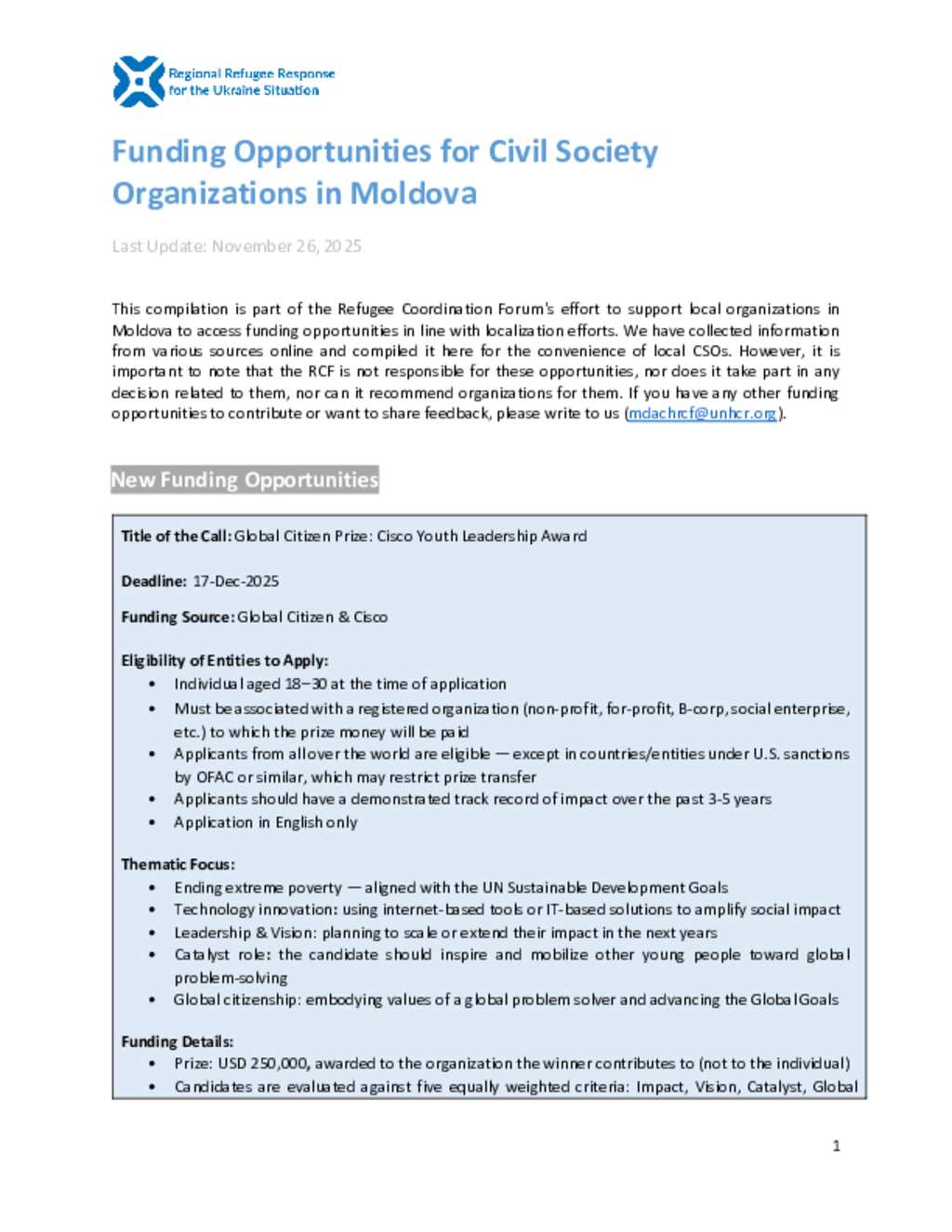Ukraine Situation - Moldova: Funding Opportunities for Local CSOs in Moldova (November 2025) (EN)