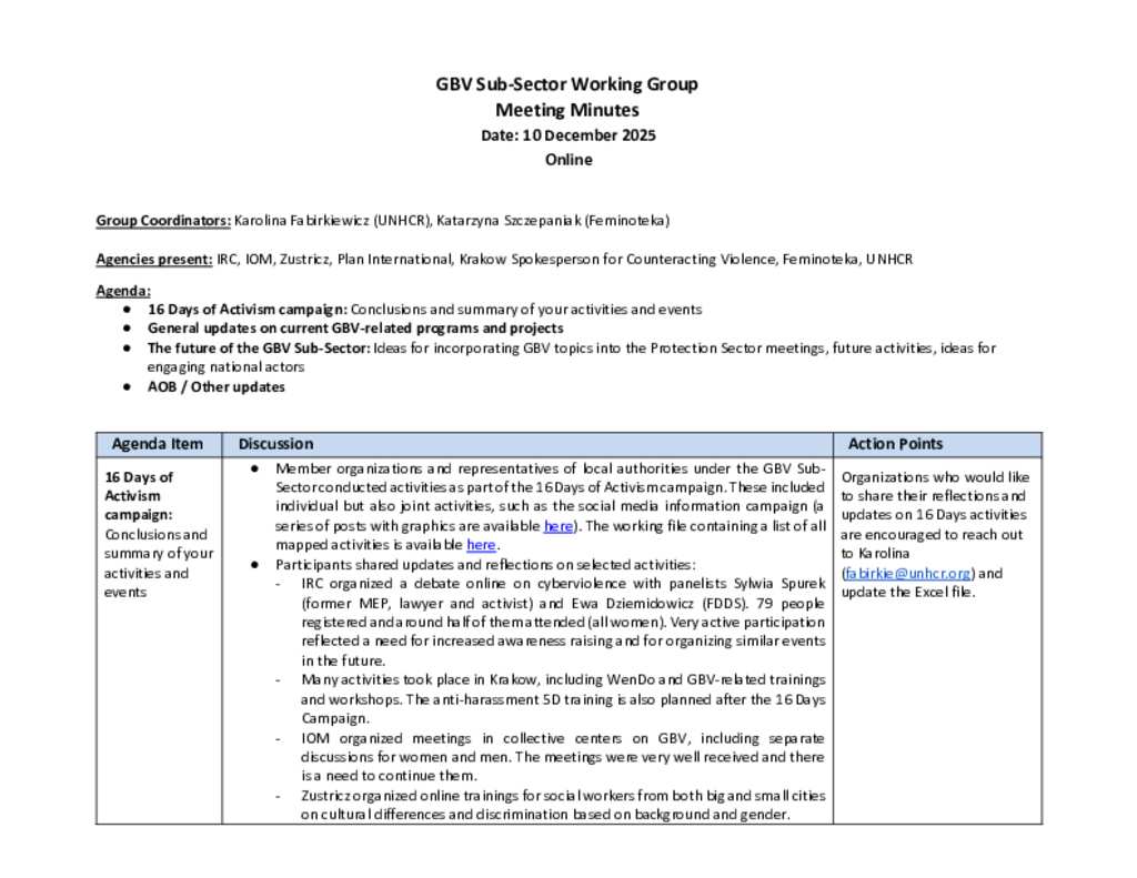 Poland: GBV Sub-Sector Working Group - meeting minutes (10 December 2025)