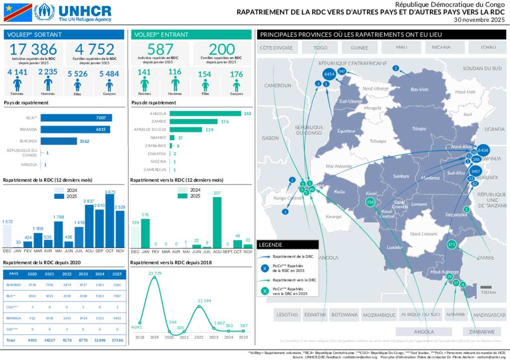 République Démocratique du Congo - Tableau de bord national du rapatriement volontaire au 30 novembre 2025