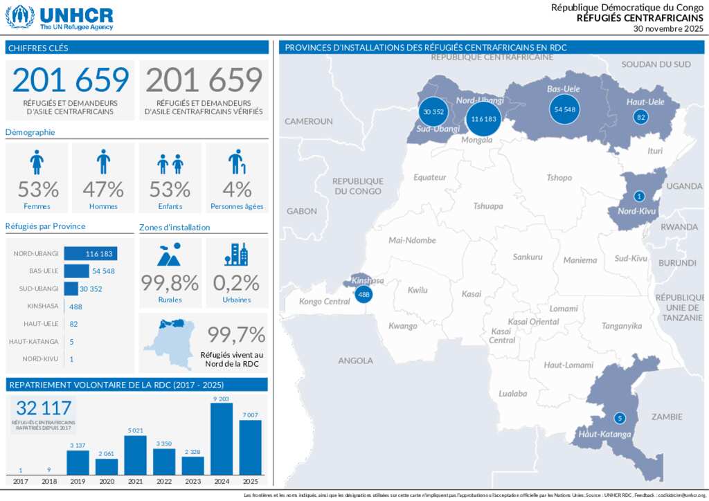 Situation des réfugiés centrafricains en RDC au 30 novembre 2025