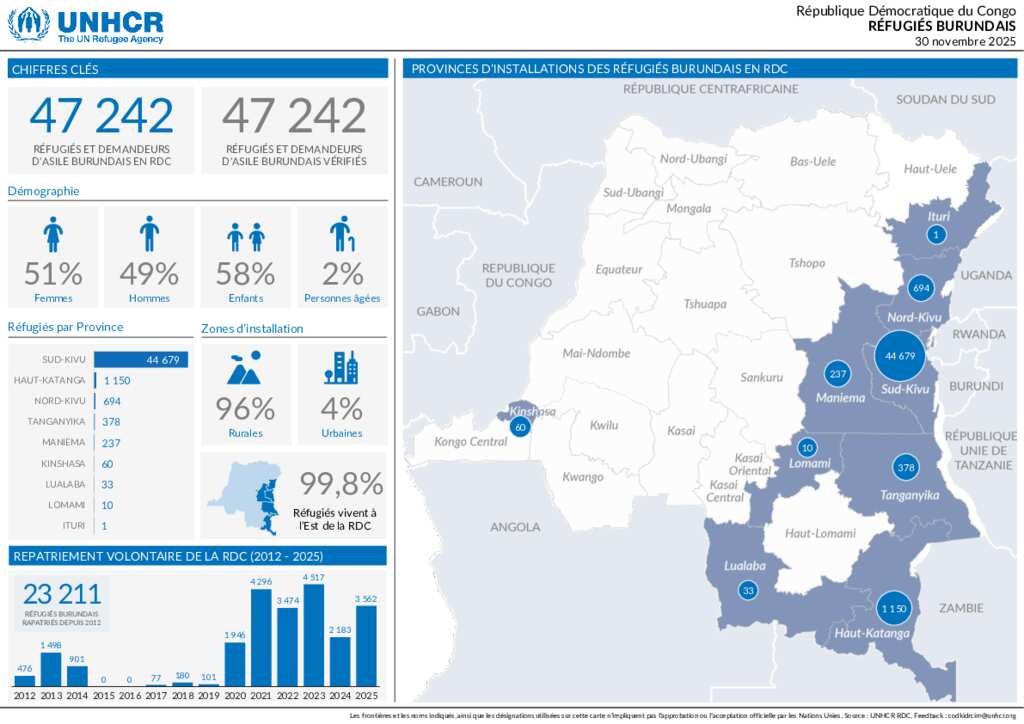 Situation des réfugiés burundais en RDC au 30 novembre 2025
