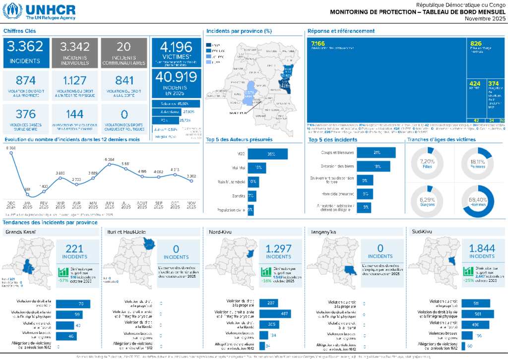 République Démocratique du Congo - Tableau de bord de Monitoring de Protection au 30 novembre 2025