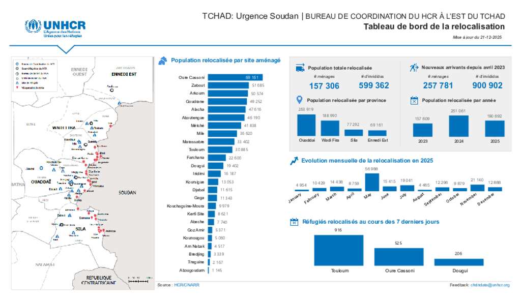 UNHCR TCHAD| Tableau de bord de la relocalisation(21 Déc. 2025)