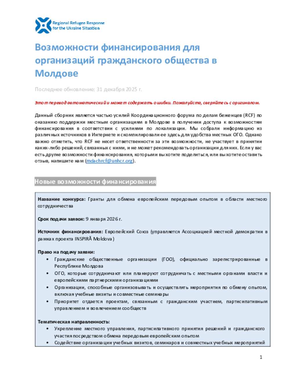 Ukraine Situation - Moldova: Funding Opportunities for Local CSOs in Moldova (January 2026) (RU)
