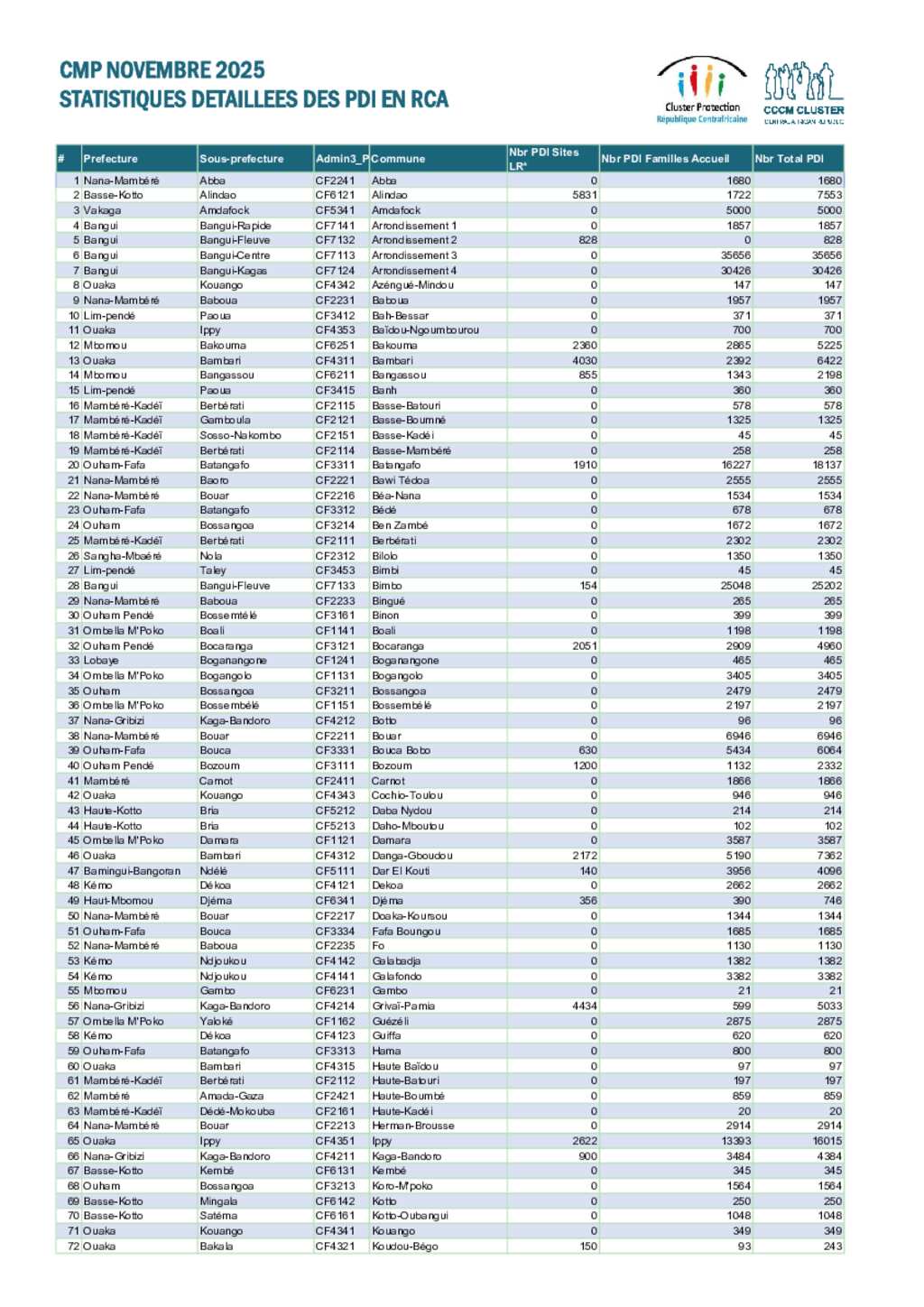 La Commission Mouvement de Populations (CMP) est un mécanisme inter-organisationnel dont l’objectif est de fournir des données chiffrées et les tendances des déplacements de la population en RCA sur une base mensuelle.