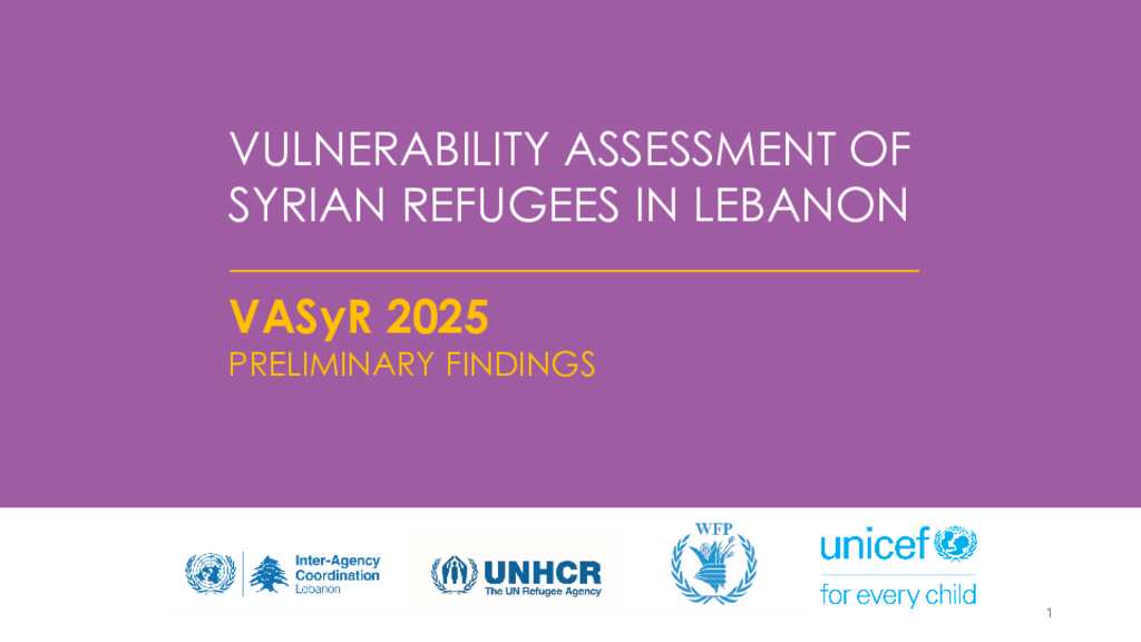 This PowerPoint presentation provides a comprehensive analysis of the 2025 Vulnerability Assessment of Syrian Refugees (VASyR) in Lebanon. Across approximately 90 slides, it presents detailed findings, sectoral trends, and visualizations to support strategic planning, programme design, and advocacy by humanitarian partners.
