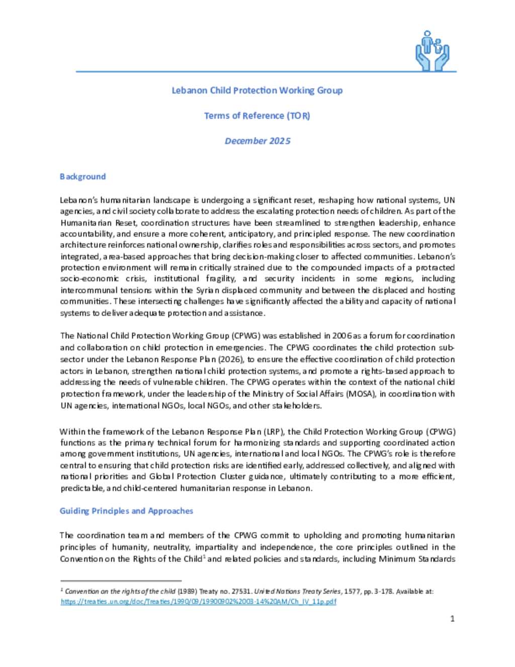 Lebanon: Inter-Agency - Child Protection Working Group - Terms of Reference (ToR) for the Child Protection Working Group (CPWG)