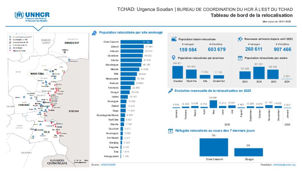 UNHCR TCHAD| Tableau de bord de la relocalisation(19 jan. 2026)