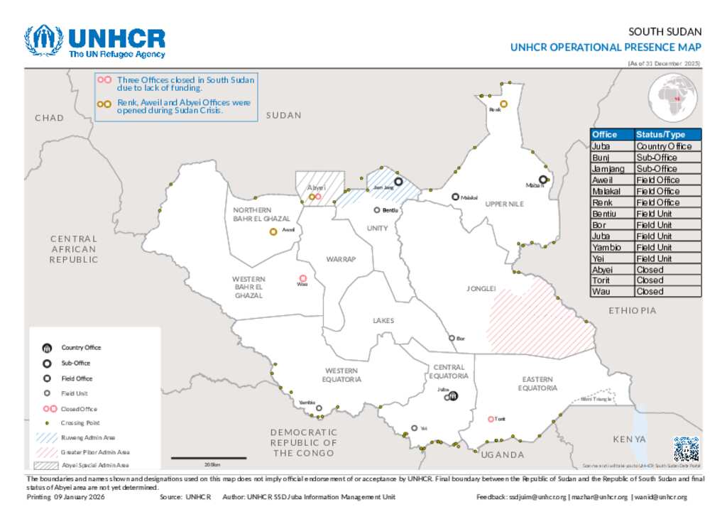 South Sudan - UNHCR Operational Presence Map-31December 2025