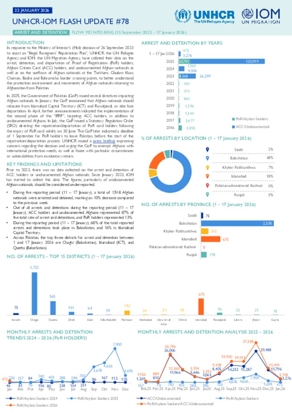 UNHCR-IOM Pakistan Flash update # 78 on Arrest and Detention/Flow Monitoring, 15 Sep 2023 to 17 January 2026