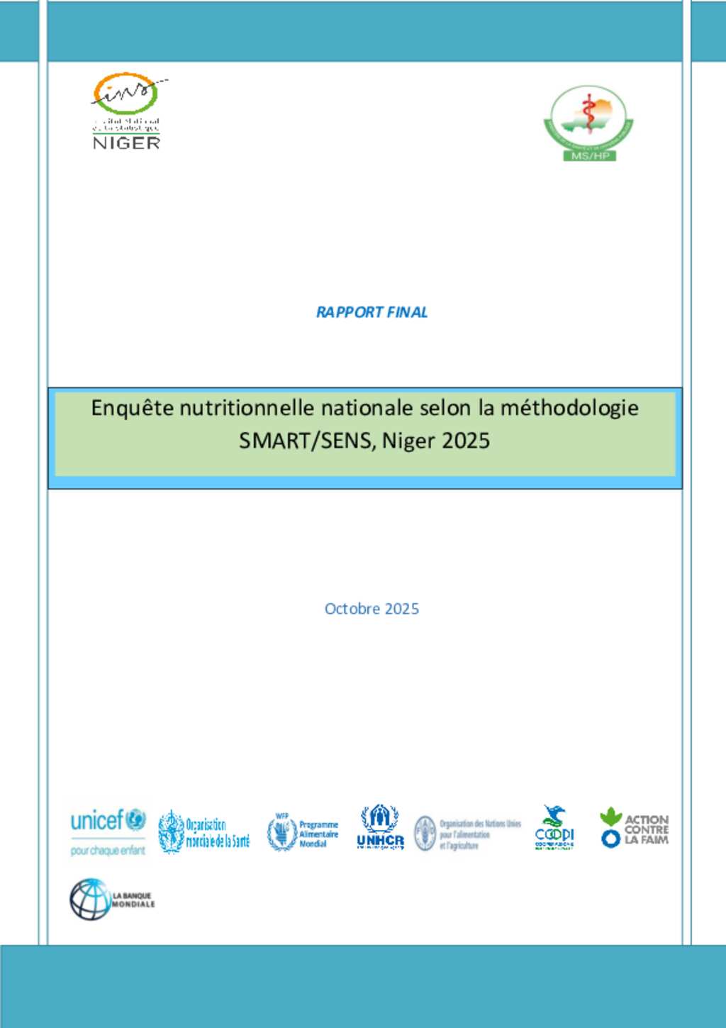 Enquête nutritionnelle nationale selon la méthodologie SMART/SENS, Niger 2025