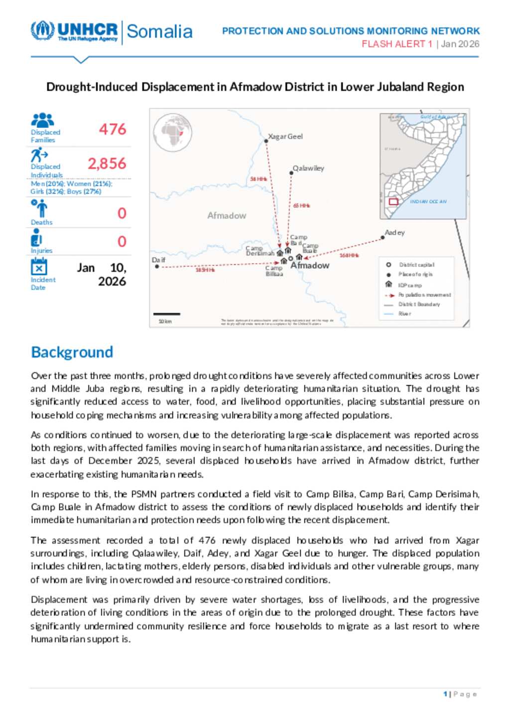 Flash Alert #1-Drought Induced Displacement in Afmadow District in Lower Jubaland