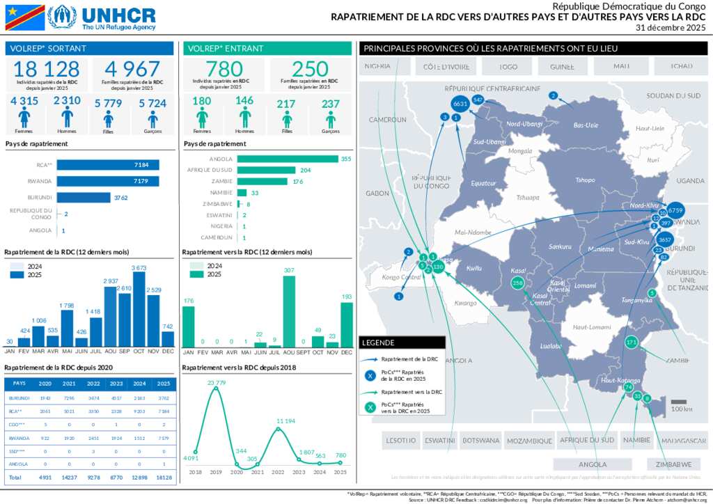 République Démocratique du Congo - Tableau de bord national du rapatriement volontaire au 31 décembre 2025
