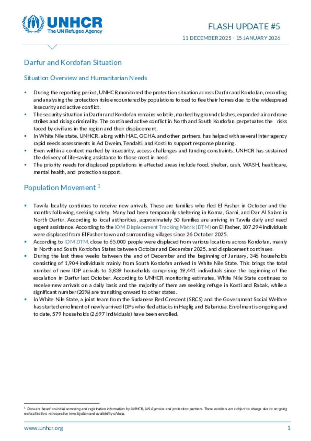 Flash Update 5 - Darfur and Kordofan Situation 15 January 2026
