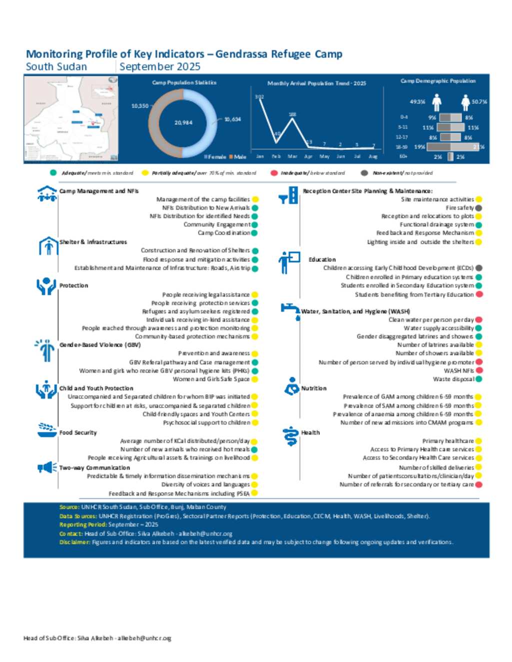 South Sudan – REVISED - Indicator Profile of Gendrassa Refugee Camp - September 2025