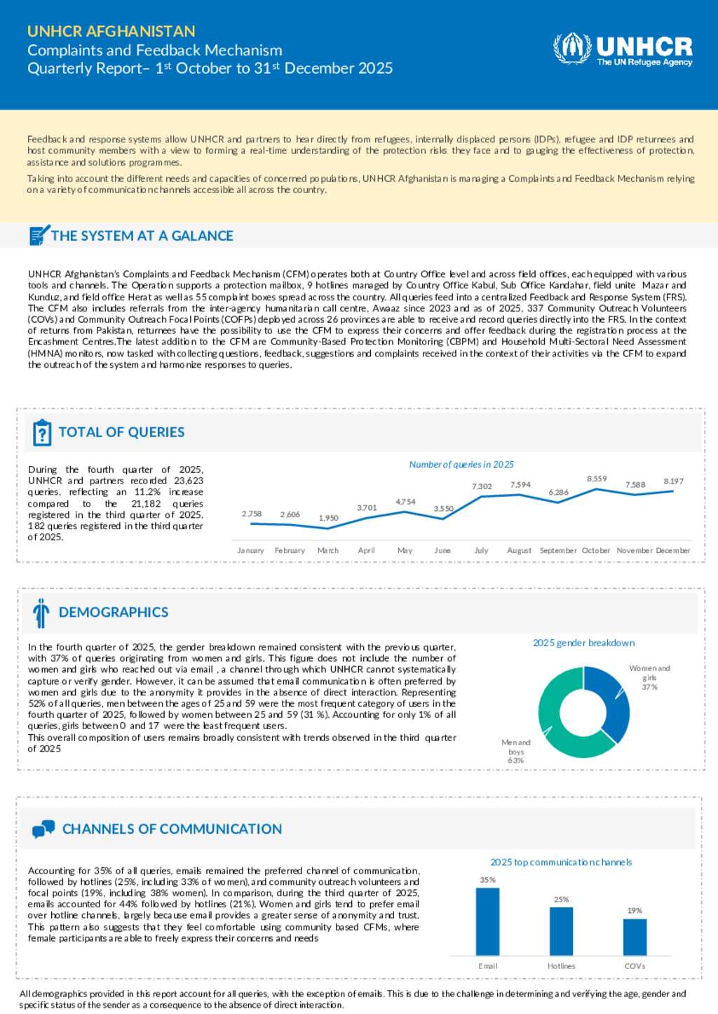 UNHCR Afghanistan - Complaints and Feedback Mechanism - Quarterly Report 1st October to 31st December 2025