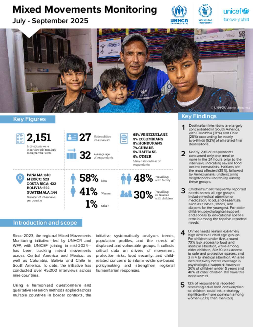 The Mixed Movements Monitoring is an interagency initiative by UNHCR, WFP and UNICEF aimed at gathering evidence on the dynamics of mixed movements in countries within the Americas region.
