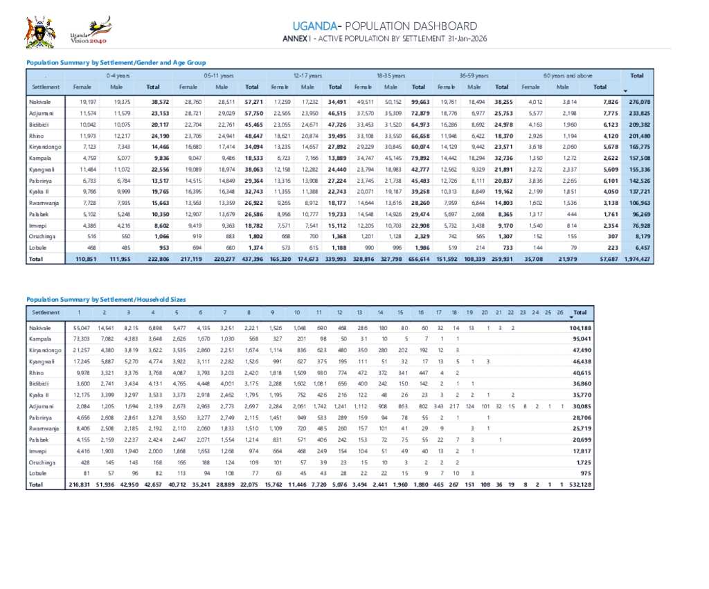 Uganda - Refugee Statistics January 2026 - Active Population by Settlement