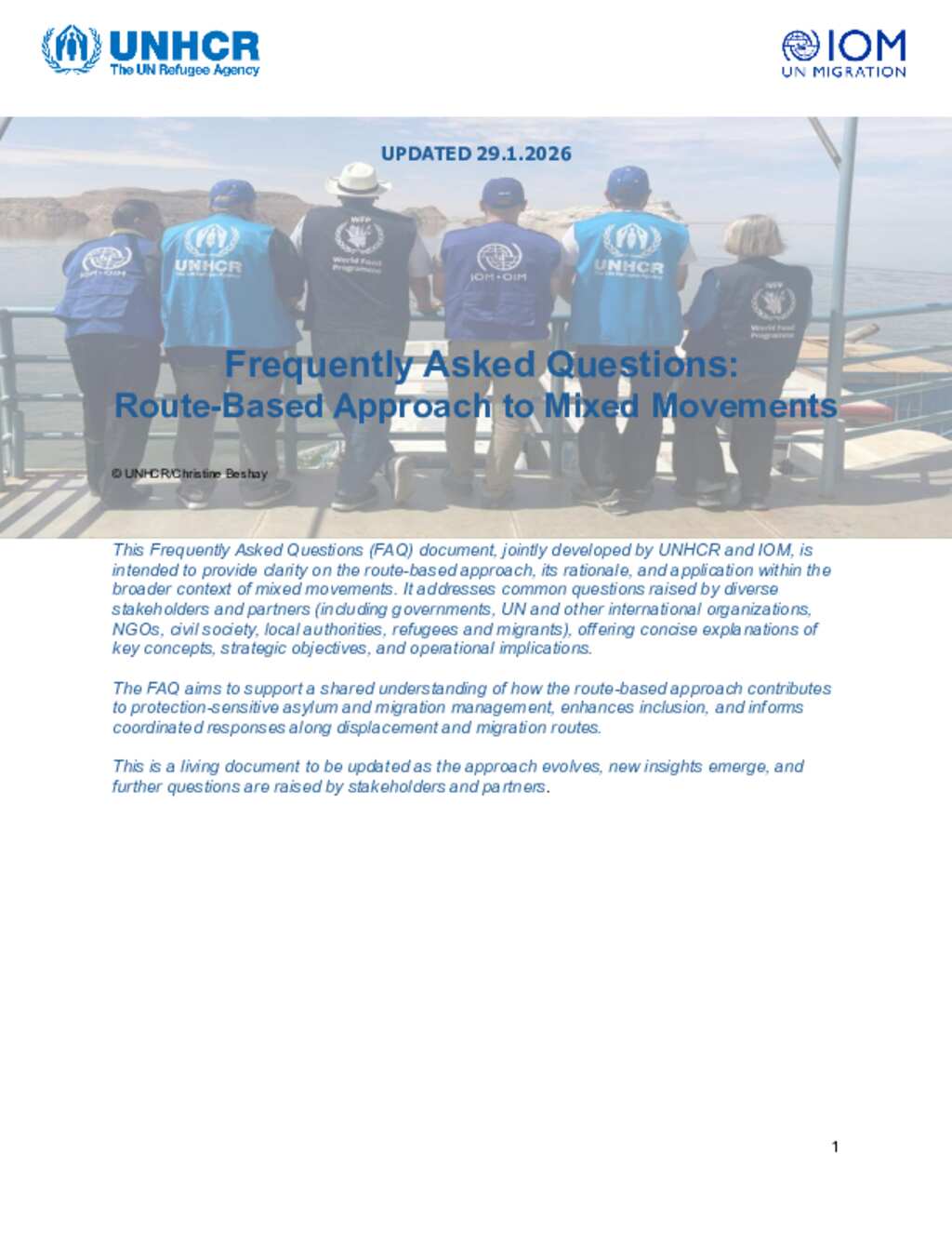 This Frequently Asked Questions (FAQ) document, jointly developed by UNHCR and IOM, is intended to provide clarity on the route-based approach, its rationale, and application within the broader context of mixed movements. It addresses common questions raised by diverse stakeholders and partners (including governments, UN and other international organizations, NGOs, civil society, local authorities, refugees and migrants), offering concise explanations of key concepts, strategic objectives, and operational implications. The FAQ aims to support a shared understanding of how the route-based approach contributes to protection-sensitive asylum and migration management, enhances inclusion, and informs coordinated responses along displacement and migration routes. This is a living document to be updated as the approach evolves, new insights emerge, and further questions are raised by stakeholders and partners.