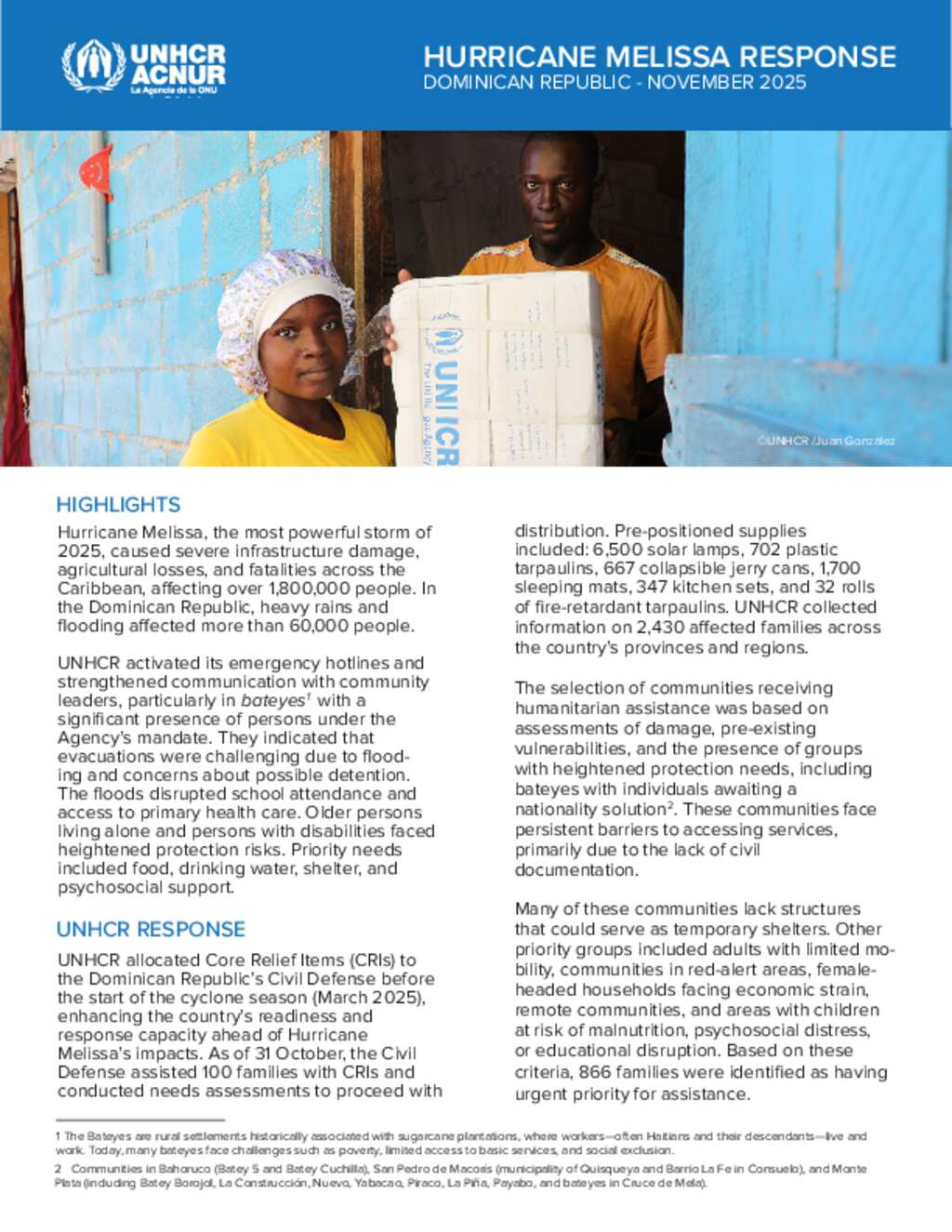 UNHCR Dominican Republic: Hurricane Melissa Response - November 2025