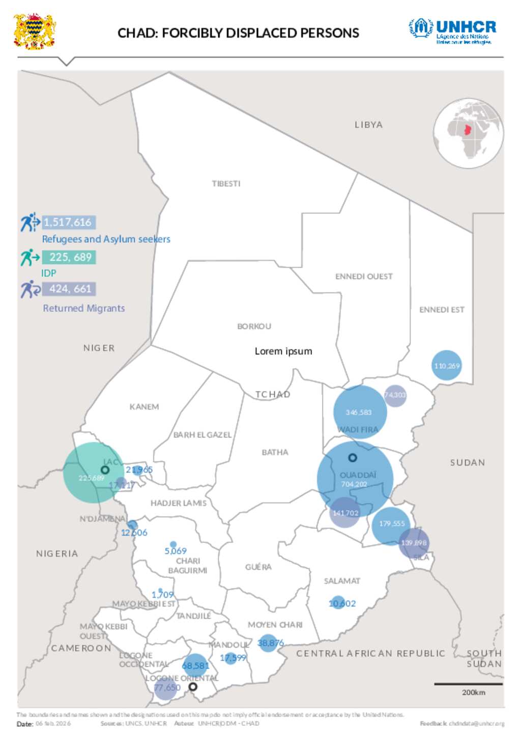 UNHCR CHAD| Mapping of Displaced and Migrant Populations in Chad by Province (jan. 2026)
