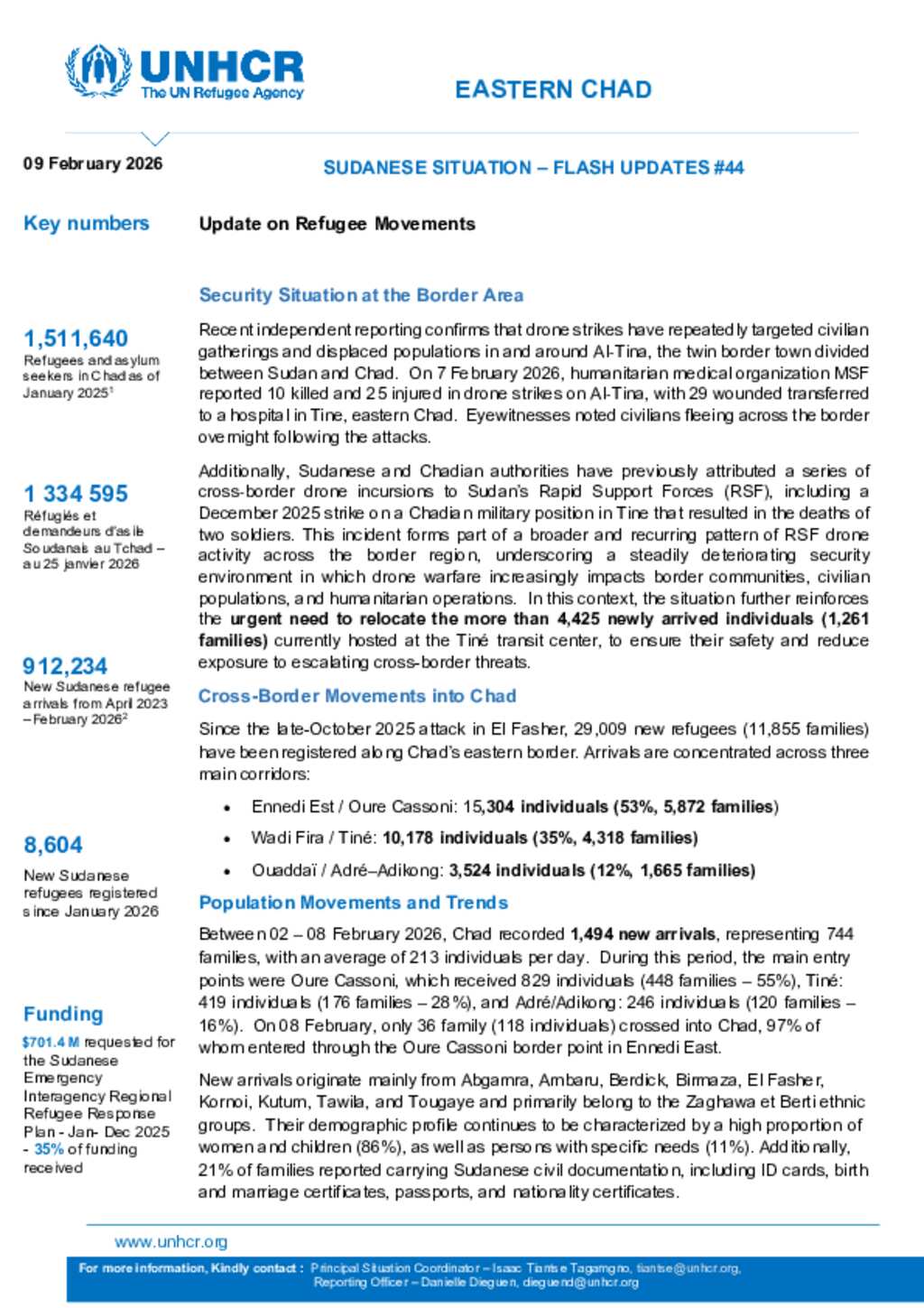 Flash Update #44 New Sudanese Refugee Influx into Chad