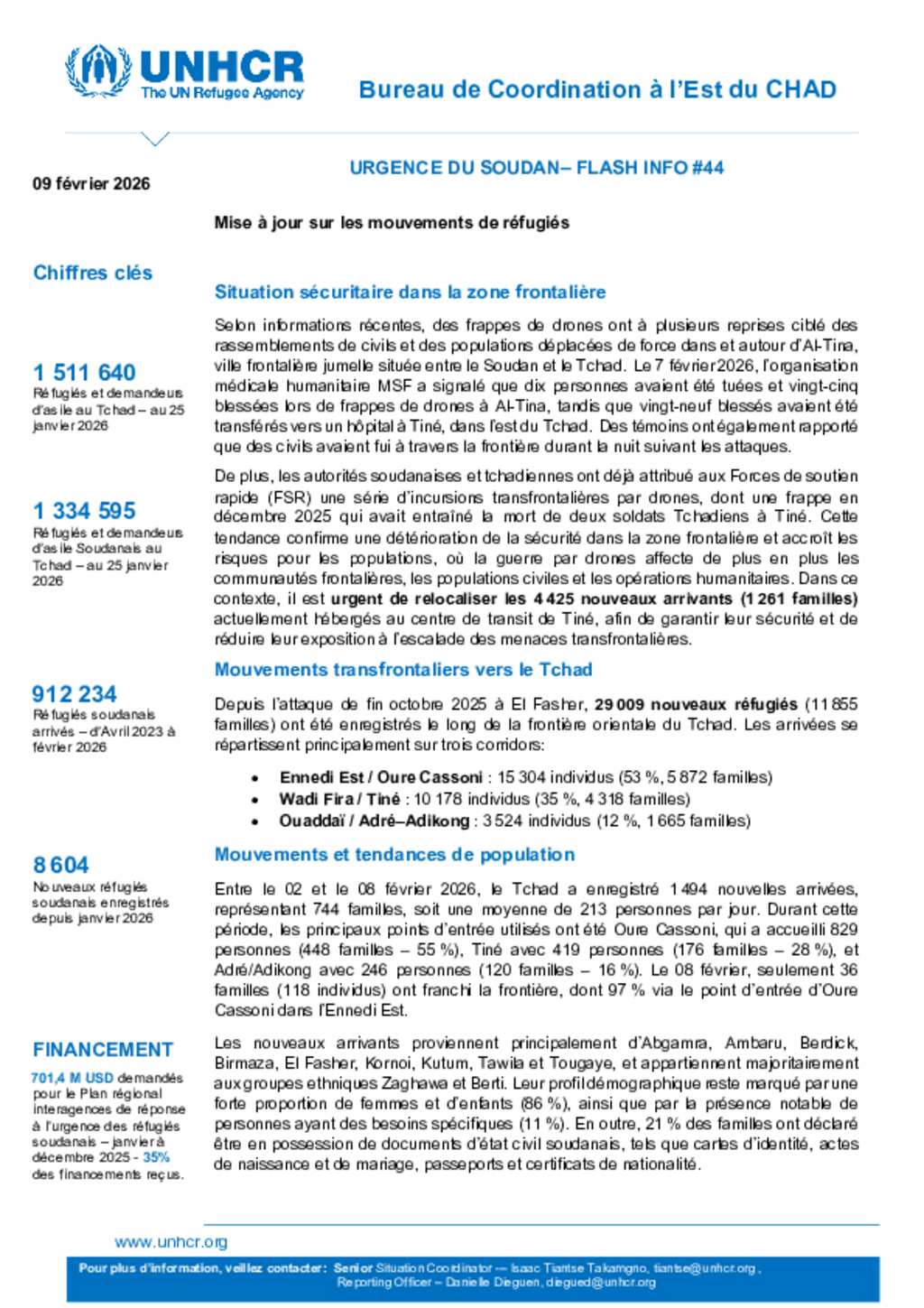 Flash Update #44 Nouvel afflux de réfugiés soudanais au Tchad