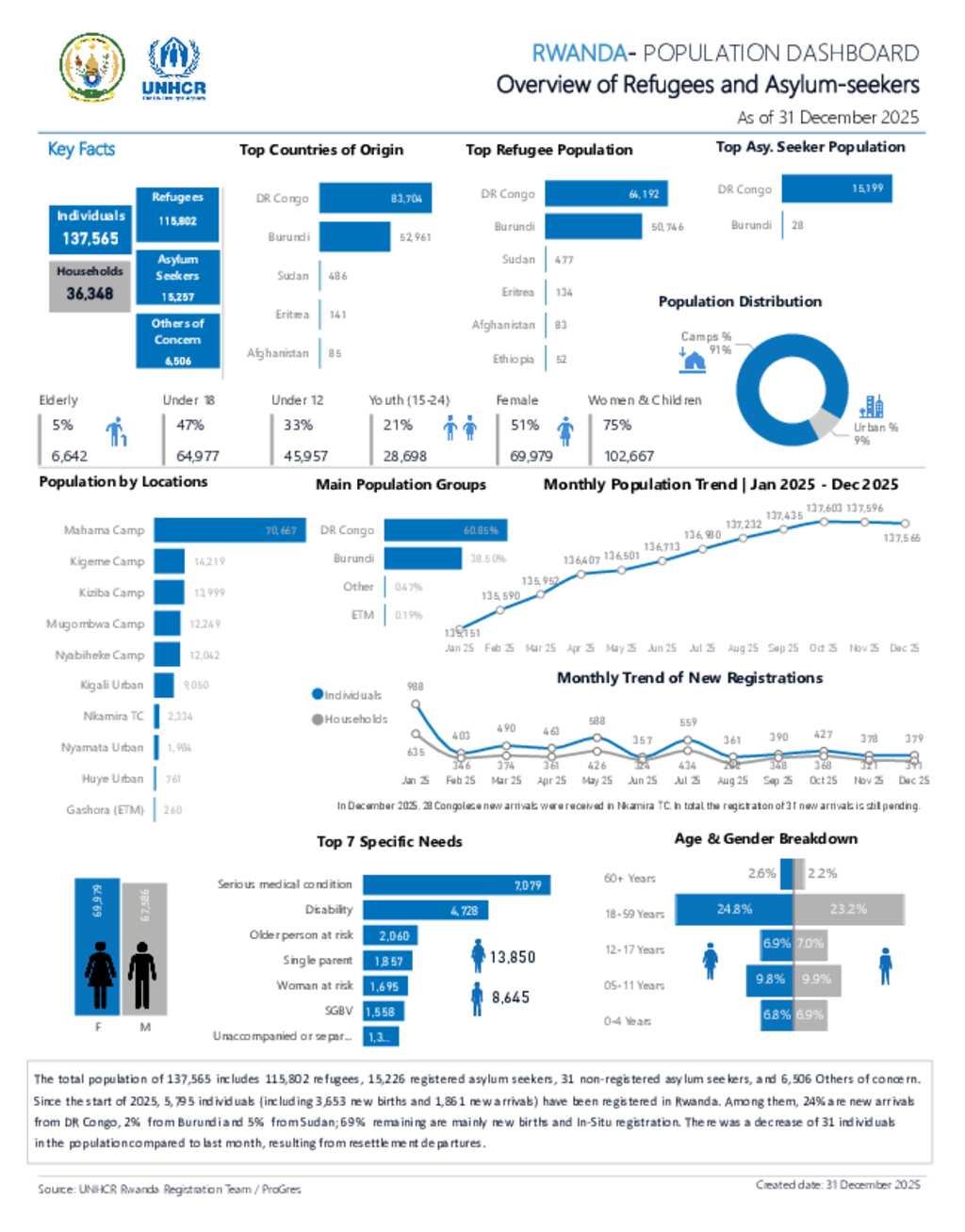 UNHCR Rwanda - Population Statistics Dashboard - 31 December 2025