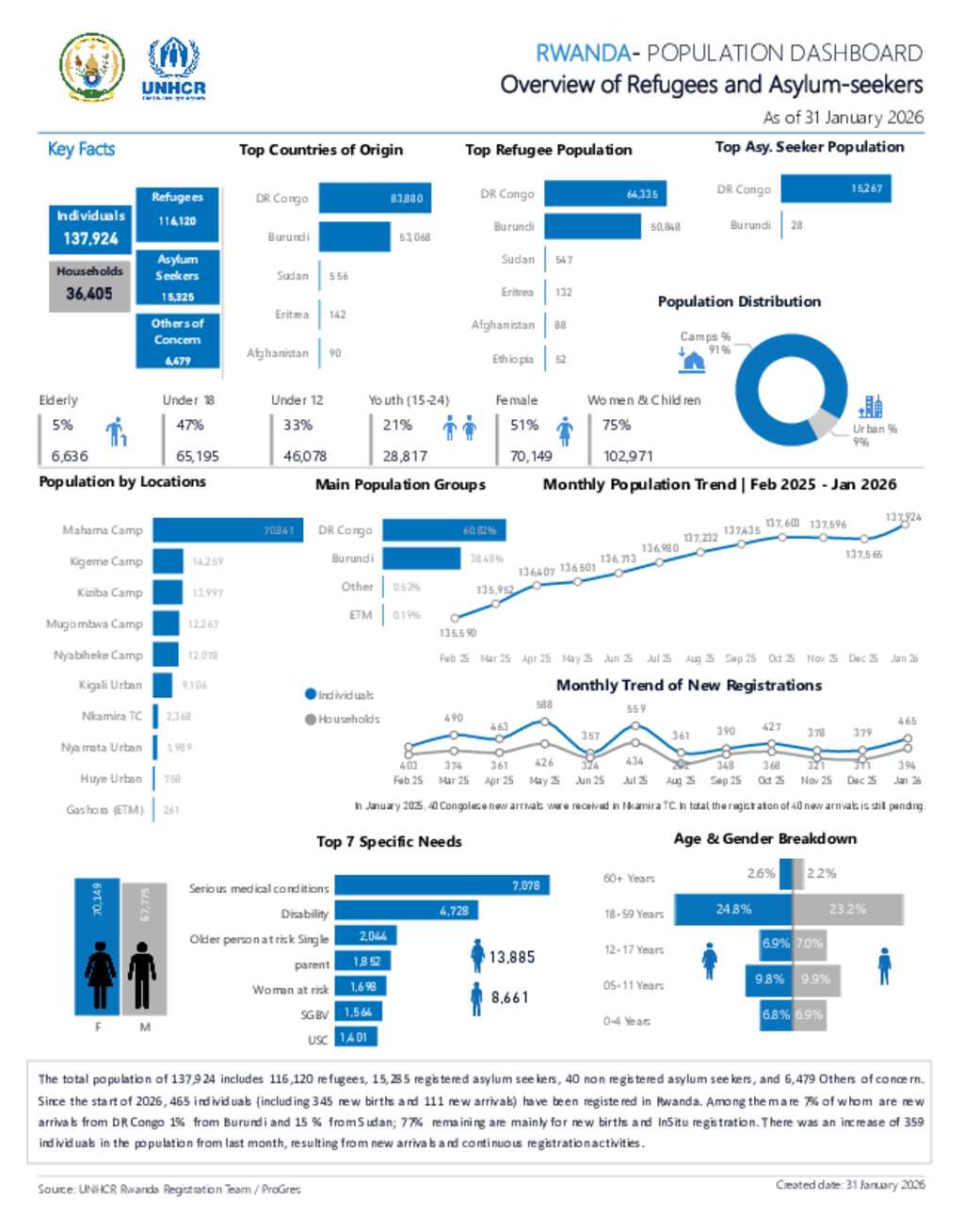UNHCR Rwanda - Population Statistics Dashboard - 31 January 2026