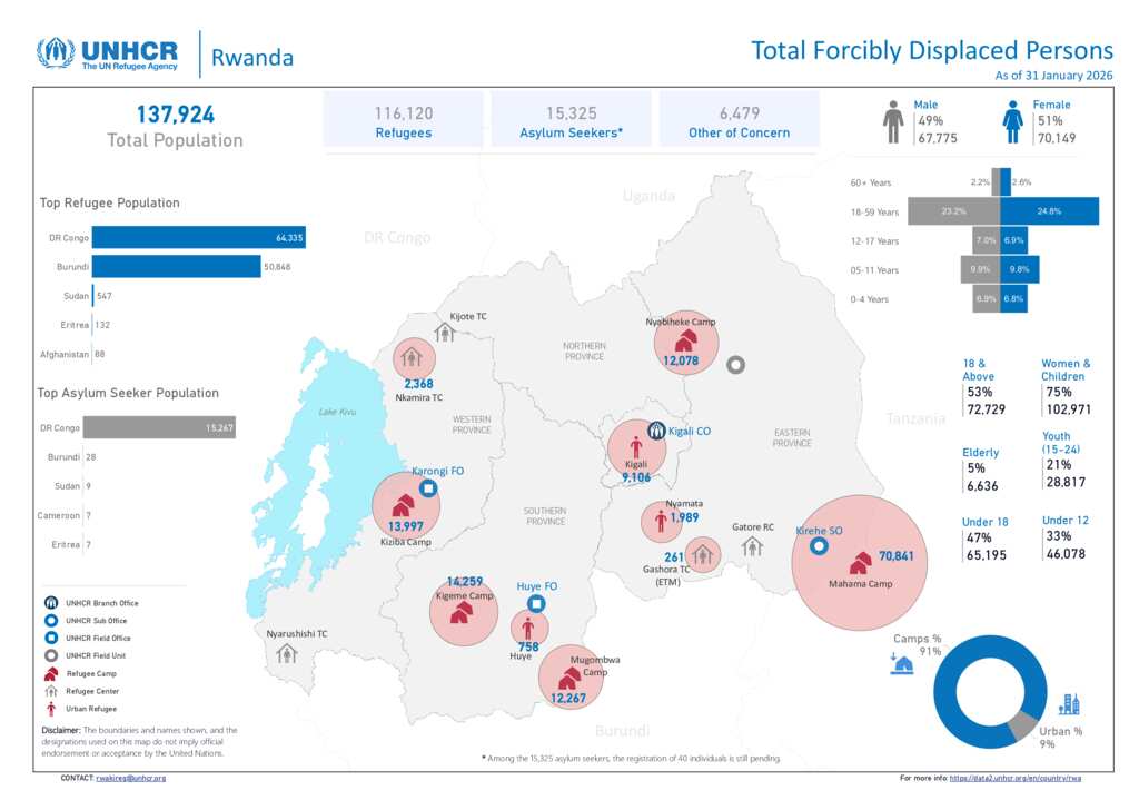 UNHCR Rwanda - Total Forcibly Displaced Population Figures - 31 January 2026