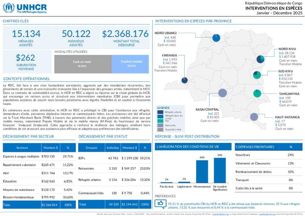 République Démocratique du Congo - Interventions basées sur les espèces au 31 décembre 2025