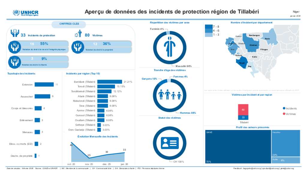 UNHCR Niger - Aperçu de données des incidents de protection de Tillaberi - Janvier 2026