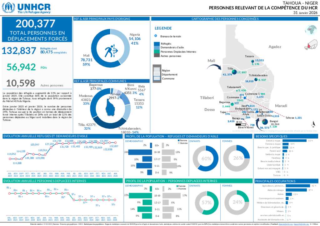 UNHCR Niger - Tahoua Map Population of Concern - Janvier 2026