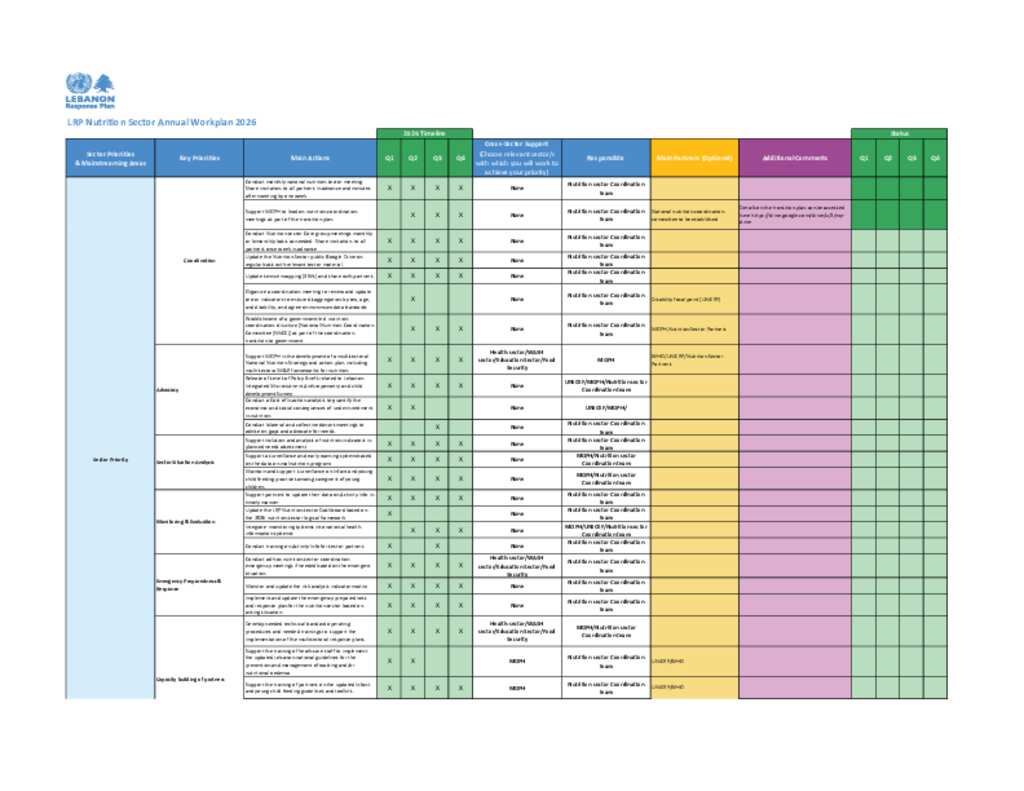 Lebanon Response Plan: Nutrition Sector Annual Work Plan - 2026
