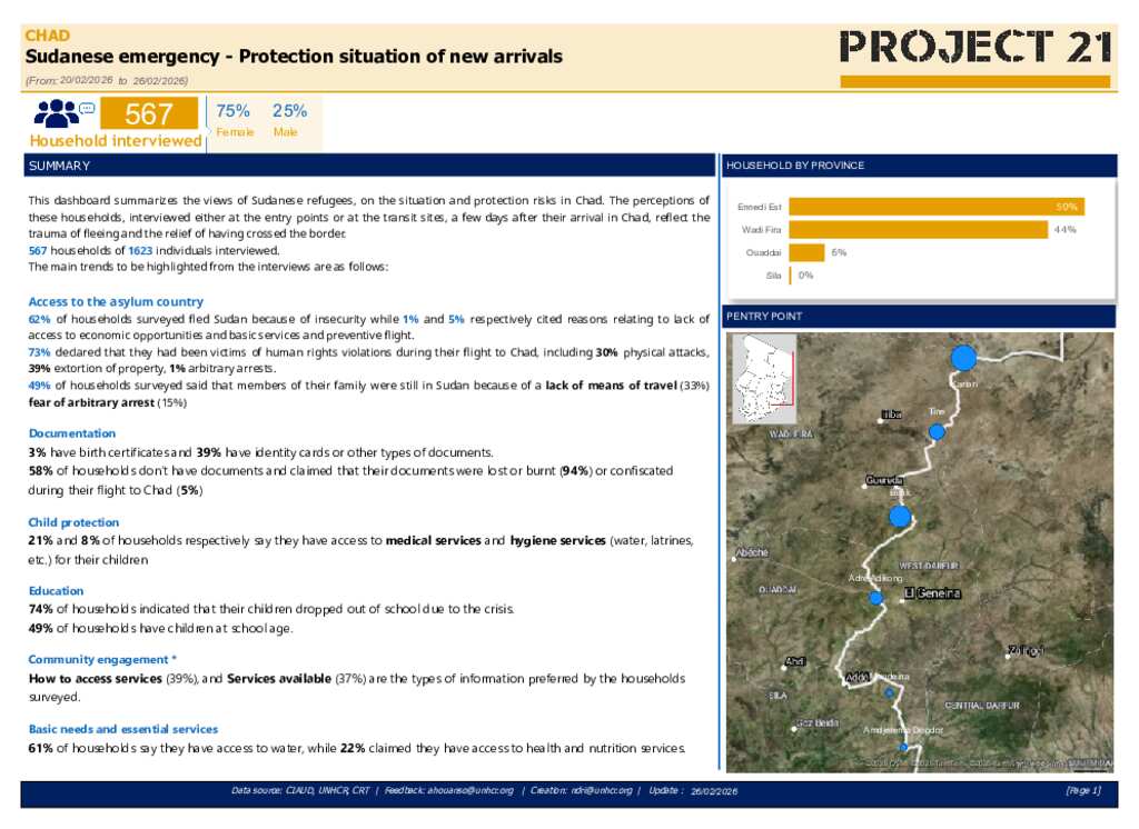 P21 - CHAD | Dashboard Preliminary results Monitoring Sudan Emergency (20 - 26 February 2026 - EN)