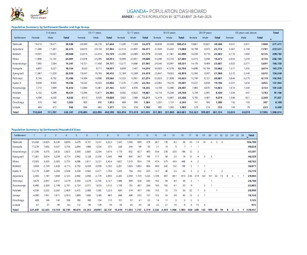 Uganda - Refugee Statistics February 2026 - Active Population by Settlement
