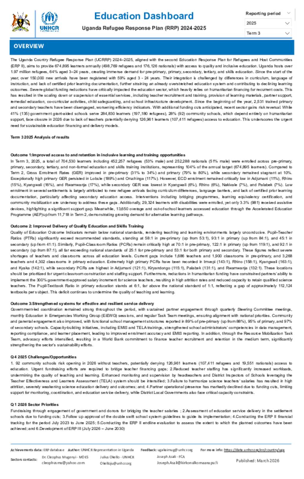 Uganda Refugee Response: Education dashboard Quarter 4 2025