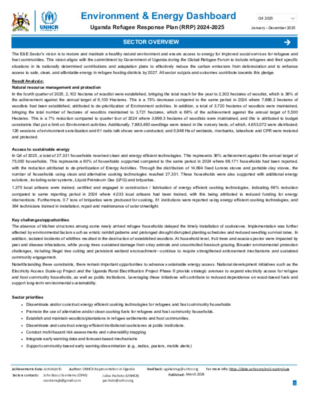 Uganda Refugee Response: Environment and Energy dashboard Quarter 4 2025