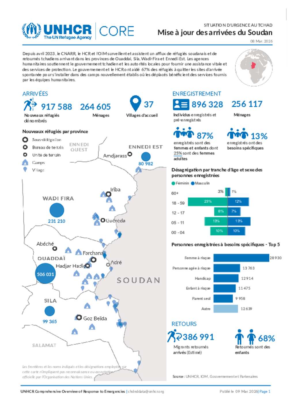 UNHCR CHAD| CORE Situation d'urgence des Réfugiés Soudanais (08 mars 2026)