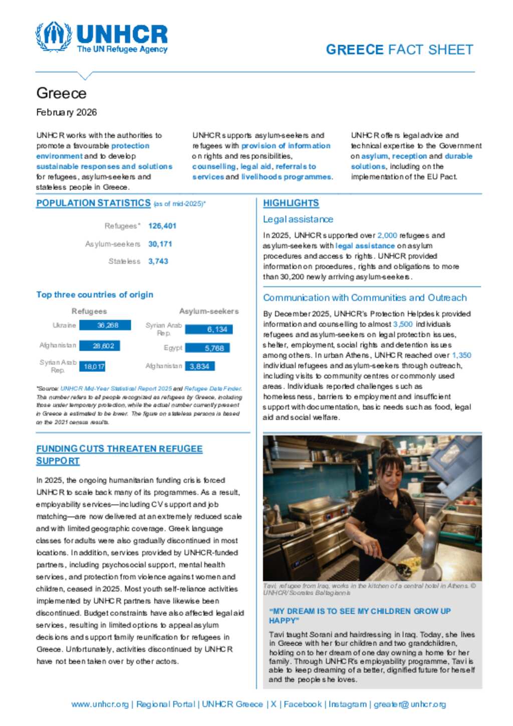 UNHCR Greece bi-annual Factsheet February 2026