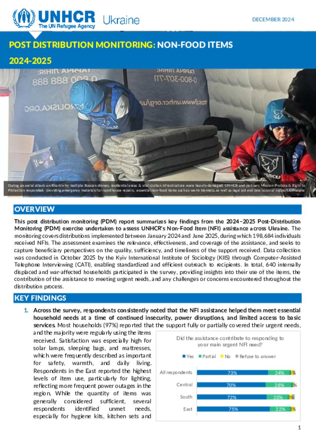 UNHCR Ukraine Post Distribution Monitoring Summary - NFI 2024-2025