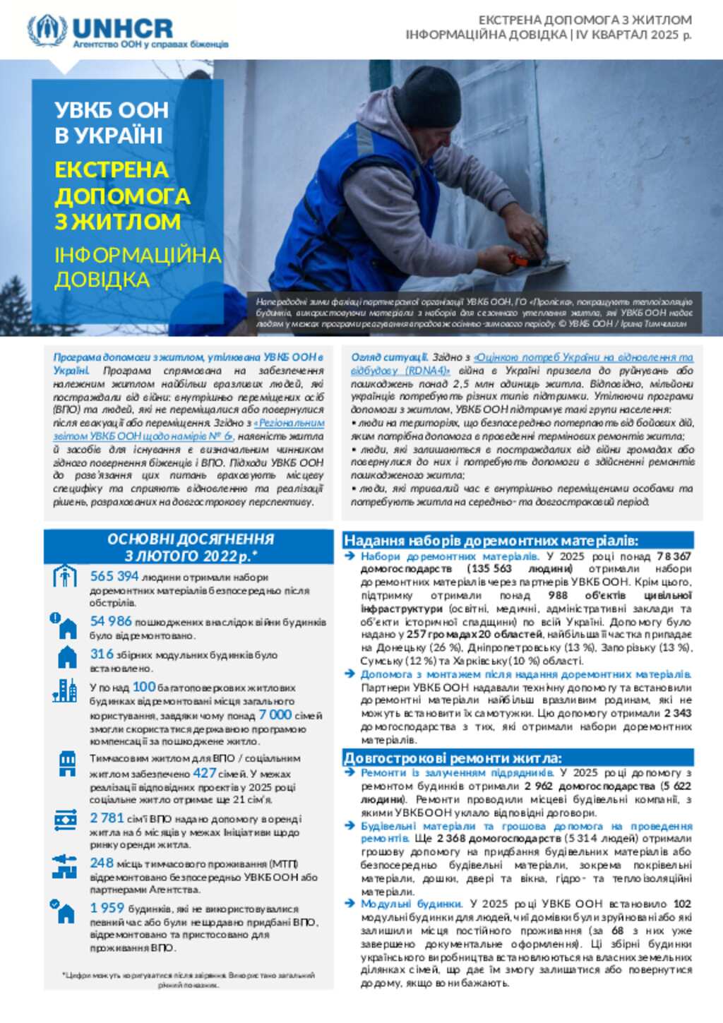 ЕКСТРЕНА ДОПОМОГА З ЖИТЛОМ: ІНФОРМАЦІЙНА ДОВІДКА. ІV КВАРТАЛ 2025 р.