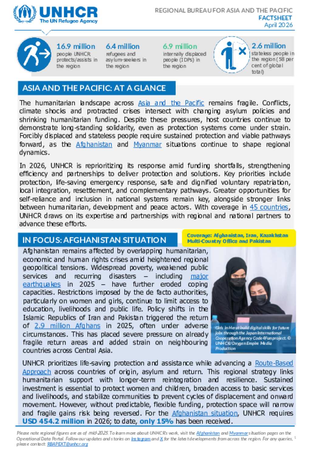 UNHCR Regional Bureau for Asia and the Pacific Quarterly Factsheet (January-April 2026)