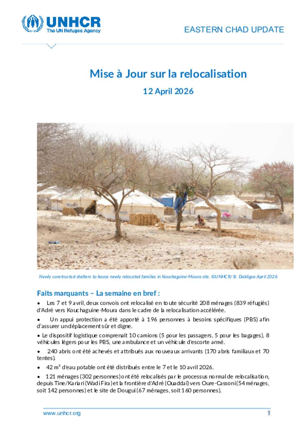 Mise à jour sur la relocalisation accélérée à l'Est du Tchad