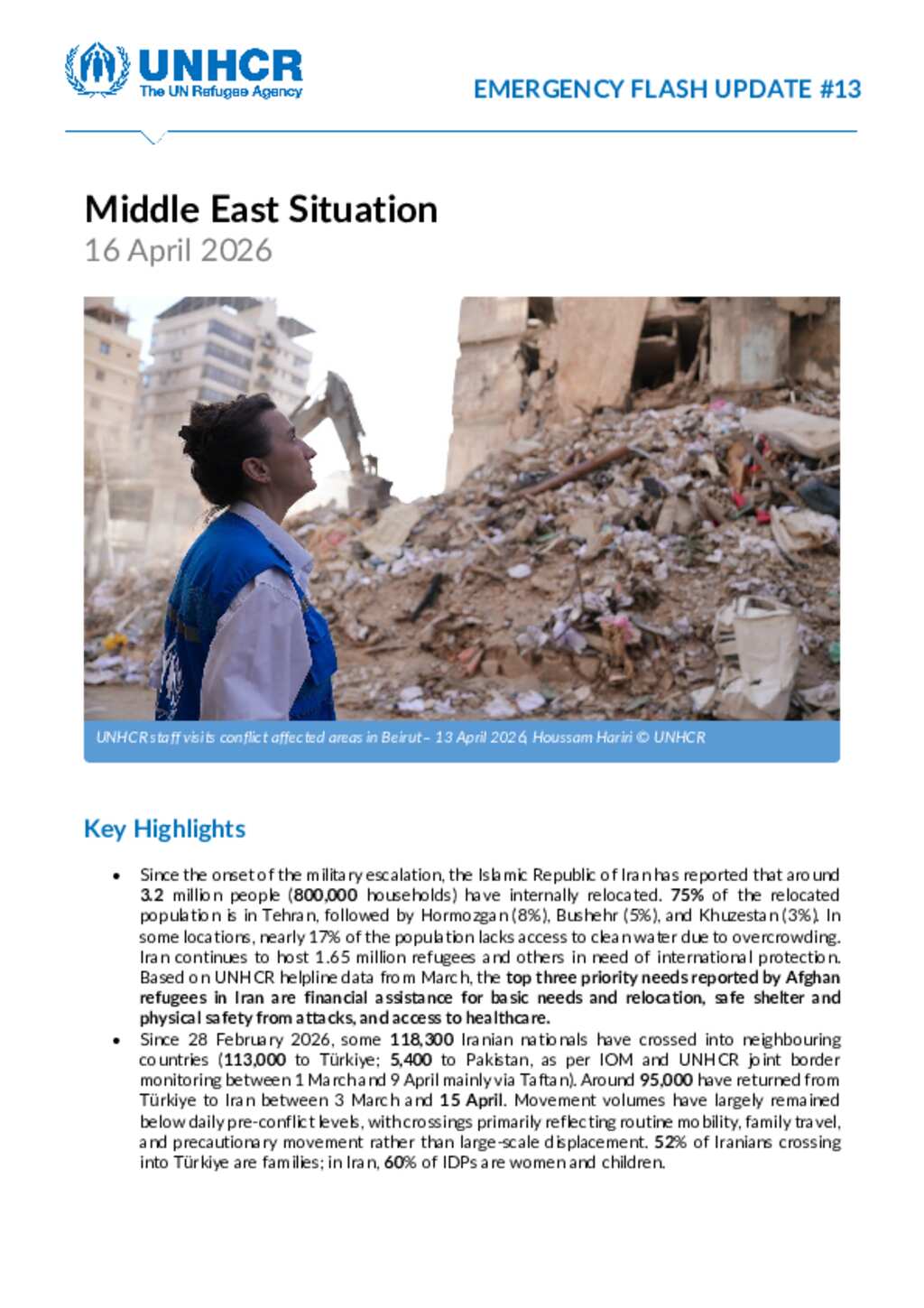 UNHCR Middle East Situation: Emergency Flash Update #13 as of 16 April 2026