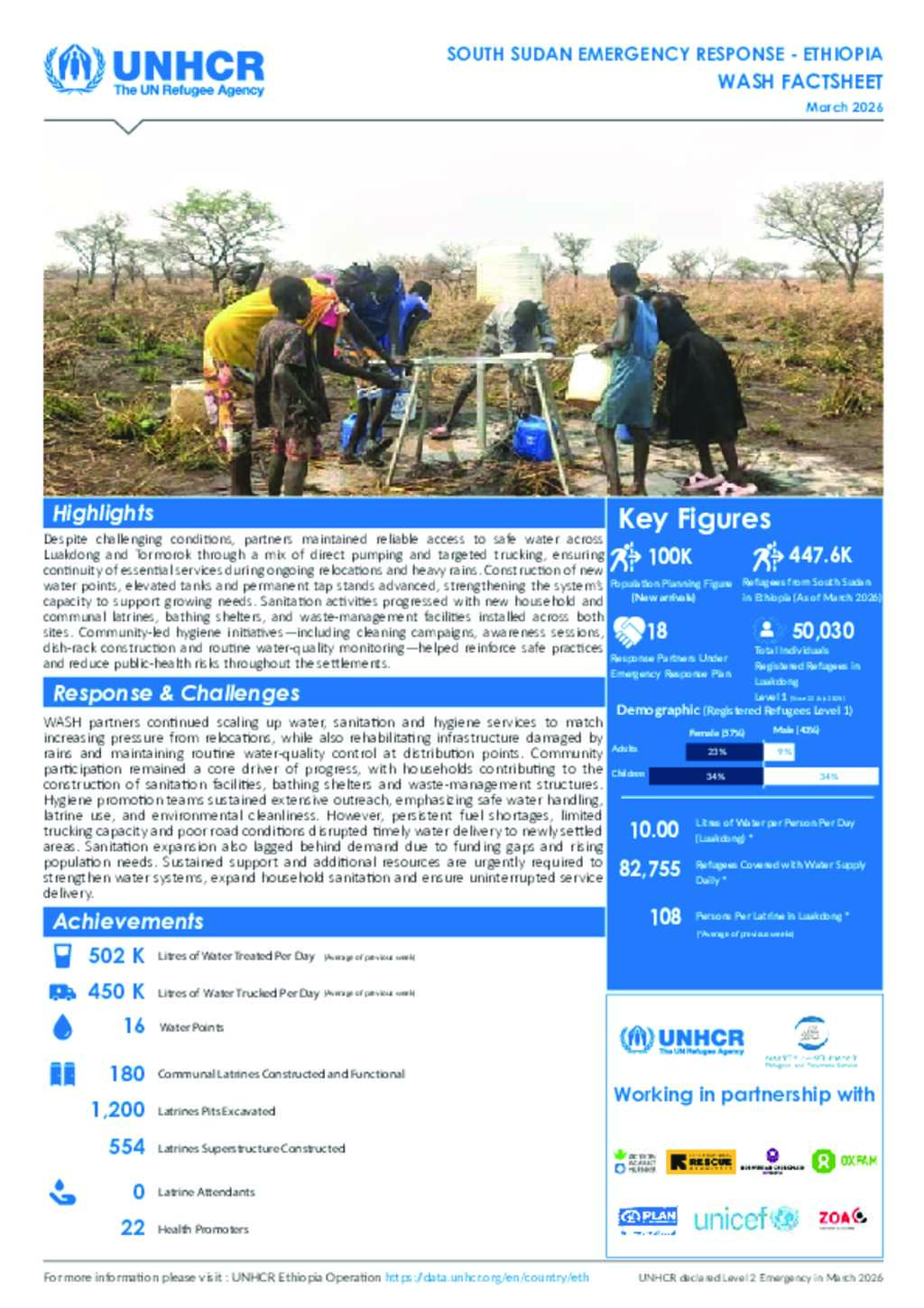 UNHCR Ethiopia South Sudan Emergency Thematic Factsheet WASH as of 31 March 2026