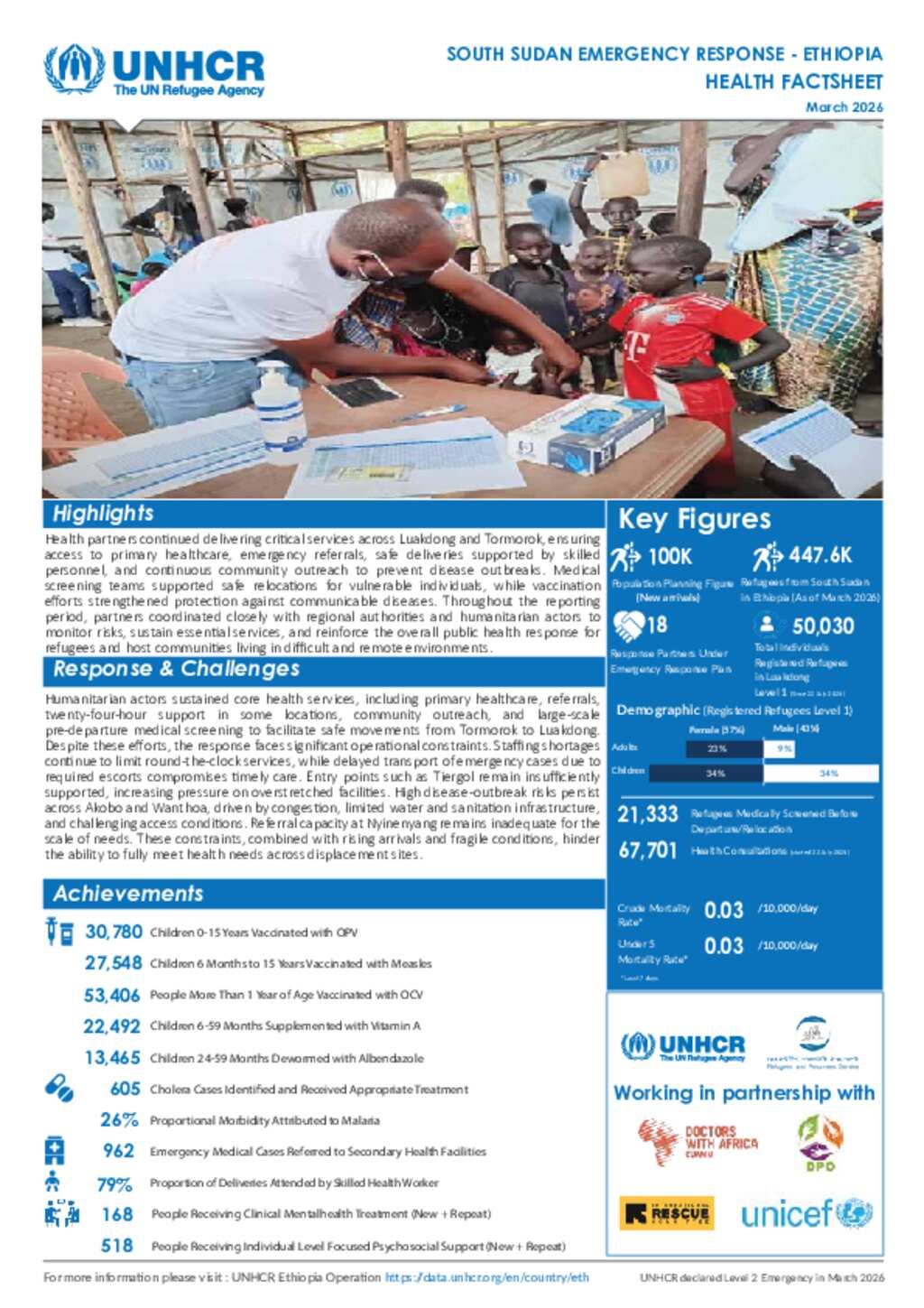 UNHCR Ethiopia South Sudan Emergency Thematic Factsheet Health as of 31 March 2026