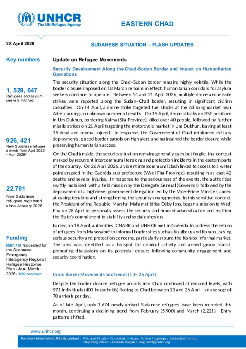 Flash Update #50 New Sudanese Refugee Influx into Chad