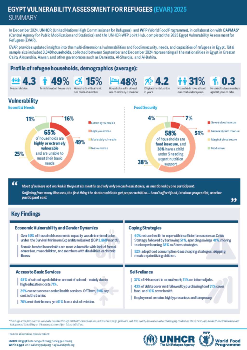 Egypt Vulnerability Assessment of Refugees (EVAR) 2025 - Summary