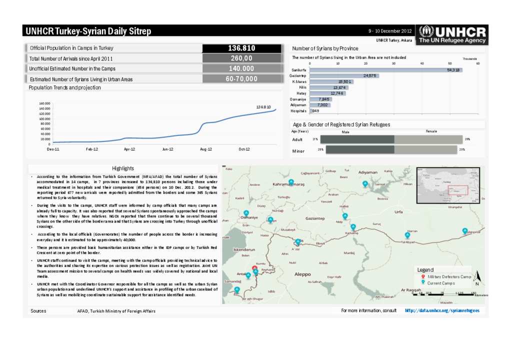 Turkey: UNHCR Update on Syrian Displacement 9 - 10 December 2012